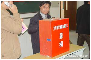 党委书记童学敏同志在赈灾捐款仪式上发表讲话,他充分肯定了我院这次义举的意义,这是中华民族历来的“一方有难、八方支援”的传统美德的体现和弘扬,尽管处在期末考试阶段,但师生的自发赈灾义举很好地体现了崇高无私的国际人道主义精神,这种精神值得发扬光大。