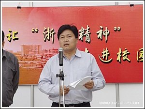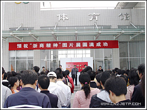 10月31日下午,全体教职工聚集在学院体育馆大厅门口参加了“浙商精神”图片展的开幕式,仪式由院长李曙明同志主持,党委书记童学敏同志发表讲话。