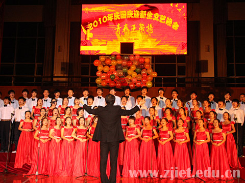 晚会以“青春正飞扬”为主题,以诗歌朗诵贯穿了“风华正茂”、“成长奋斗”、“成功励志”、“青春飞扬”四个篇章。诗朗诵《致国旗》、合唱《女兵谣》、歌曲《不离不弃》、合唱《国家》等节目,讴歌了新中国成立61年来取得的伟大成就,表达了大学生热爱祖国的赤子情怀和强国为民的报国之志。《旭日热“舞”》、小品《“媛”在心中》、群舞《篮球兄弟》等节目,向新同学们展现了经贸人团结一致、奋发有为的精神风貌。