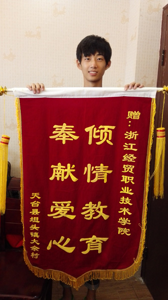 大余村给学院赠送了锦旗。