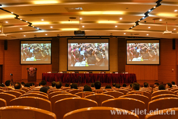 张建代表省供销社党委、理事会向学校全体教职员工致以节日的问候,充分肯定了近年来学校在人才培养、教学科研、社会服务等方面取得的成绩。他指出,国家对职业教育的高度重视和浙江省“两个先行”的奋斗目标为学校发展带来了难得的历史机遇,希望经贸学院从坚持加强党的全面领导、坚持人才强校战略、坚持立德树人根本任务、坚持紧贴行业发展等四个方面持续发力,扛起责任、抓住机遇、抢占高地,勇当新时代职教先锋,在全面建设社会主义现代化国家新征程中展现更大担当。