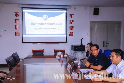 在校期间,美方师生一行参观了学校各类场馆和实训基地,还参加了中美师生学术交流研讨会。汤京鹏教授以工程技术学院软件和计算机专业为例作专题报告。他围绕美国计算机专业发展现状,重点介绍了ABET认证机构在教育质量保证中的作用以及“以学生为主体”的专业技术人才培养模式。在交流环节,双方师生围绕中美专业设置、教学方法、学习环境等内容进行了热烈讨论。