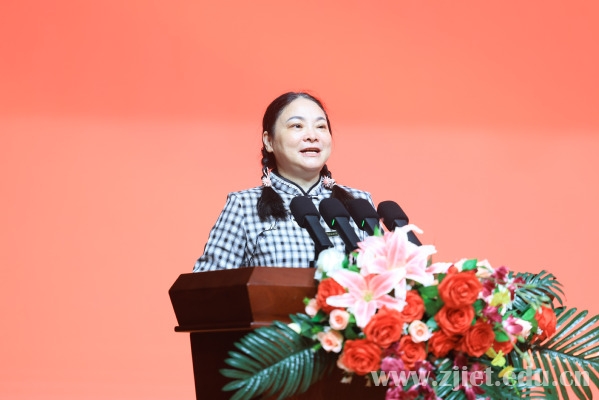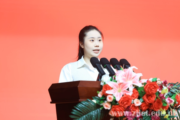 浙江省高职院校国家奖学金特别评审奖获得者、食品健康学院葛越作为毕业生代表发言。她深情回顾从“书记、校长第一课”、世界职业院校技能大赛到“毕业教育最后一课”的“经贸式温暖”,表达了对母校和老师最深切的谢意。