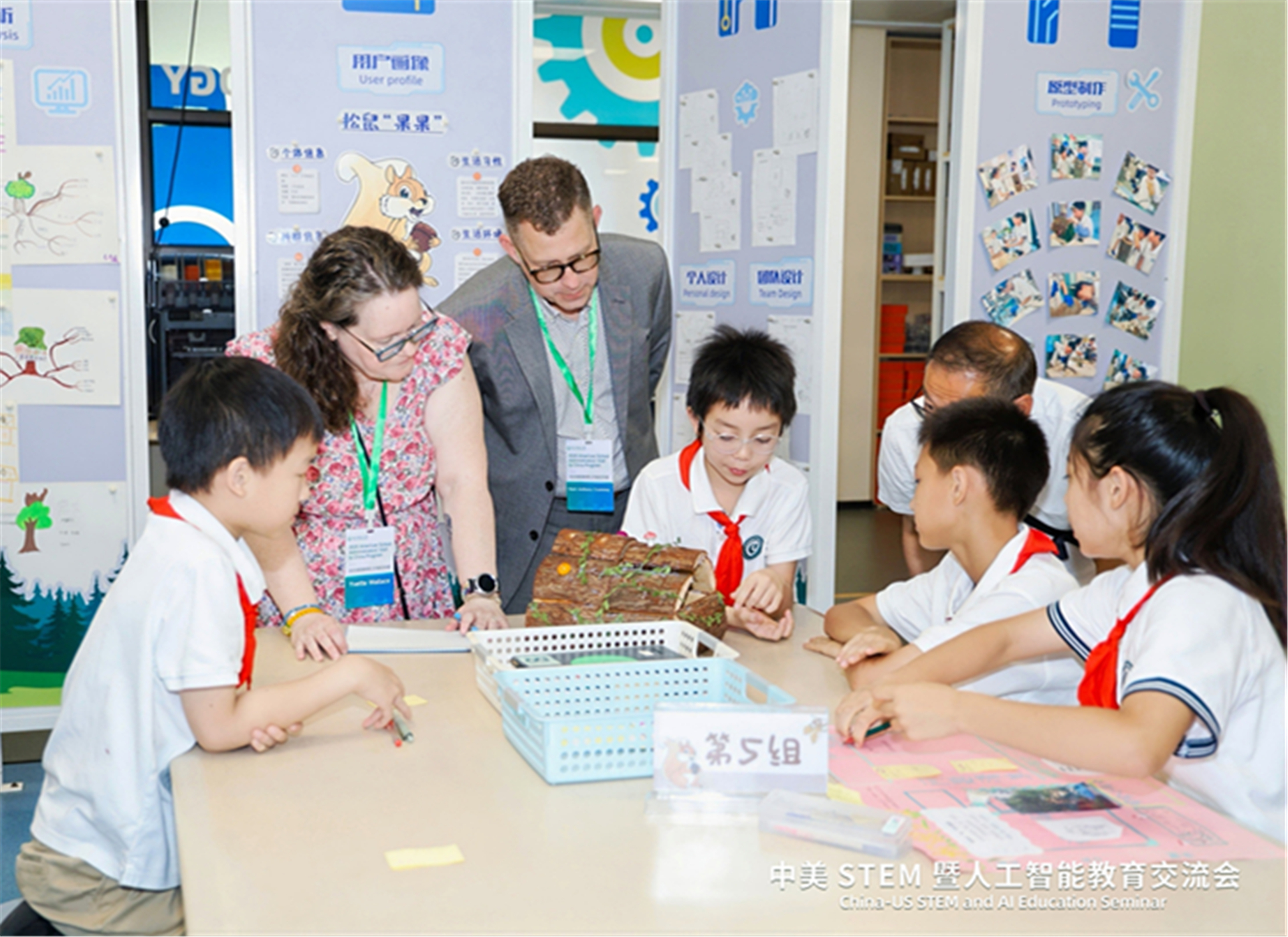 会上,中美双方代表分别围绕STEM教育和人工智能教育,分享了各自领域的实践经验,开展了创新人才培养的深入研讨。美国代表们还观摩了杭州绿城育华学校小学部STEM课程“松鼠的家”,兼具科学性与趣味性的课程、学生们的奇思妙想和创造性思维令代表团成员印象深刻。